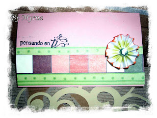 Ada nos enseñó a preparar este hermoso album veraniego. Con bellos colores y detalles estampados, cintas y piezas de la máquina de
